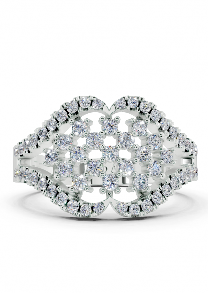 14K white gold ring with 0.46ct round diamonds. Ring weight is approximately 4.50 grams. The ring can also be made to order in 18K gold. We can modify the design according to your budget.