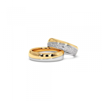 14K gold wedding rings with 0.52ct white diamonds. Approximate weight is 12.00gr/set. The width is 5mm. Wedding rings can be made to order in 18k gold. We can modify the design according to your budget. We can choose the diamond characteristics (cut, color, clarity, carat) for the...