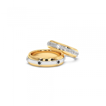 14K gold wedding rings with 0.52ct white diamonds. Approximate weight is 12.00gr/set. The width is 5mm. Wedding rings can be made to order in 18k gold. We can modify the design according to your budget. We can choose the diamond characteristics (cut, color, clarity, carat) for the...