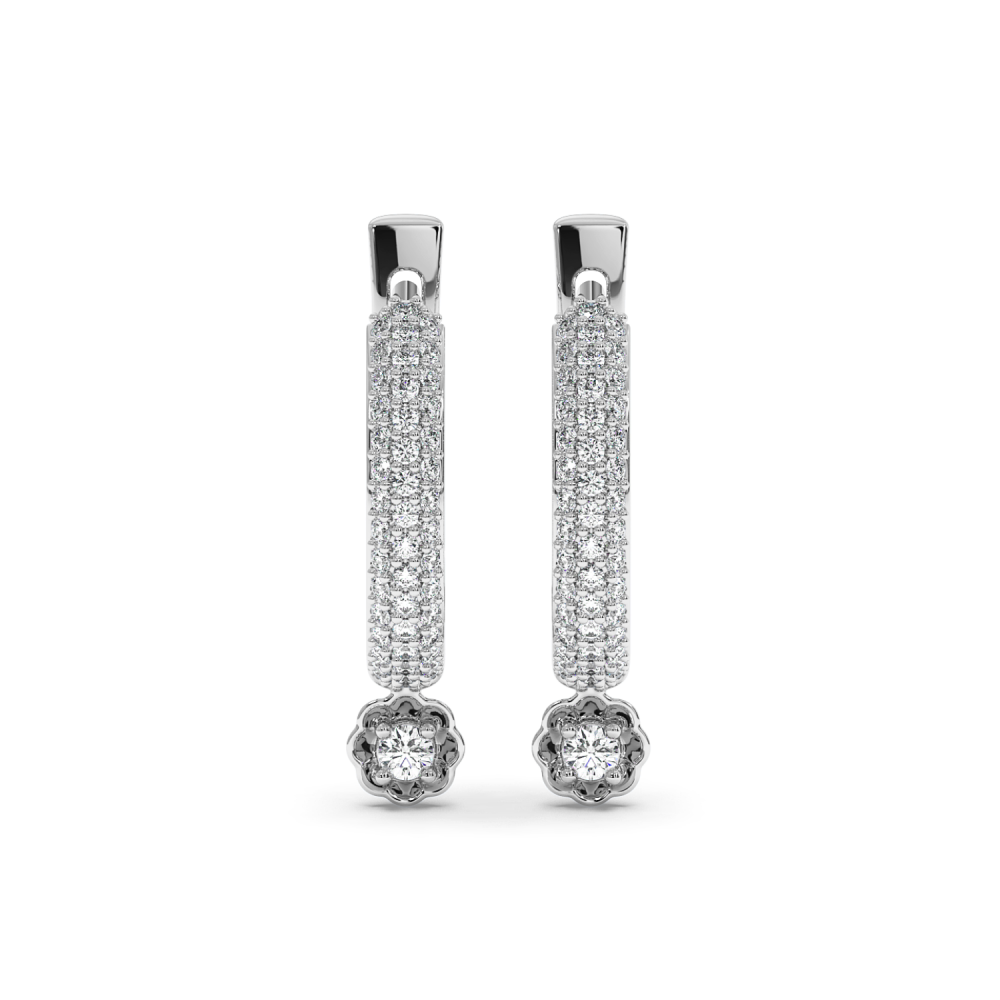 14 K white gold earrings with 0.53 ct diamonds. The weight of the earrings is 4.06 grams. The length of the earrings is 2.00 cm
