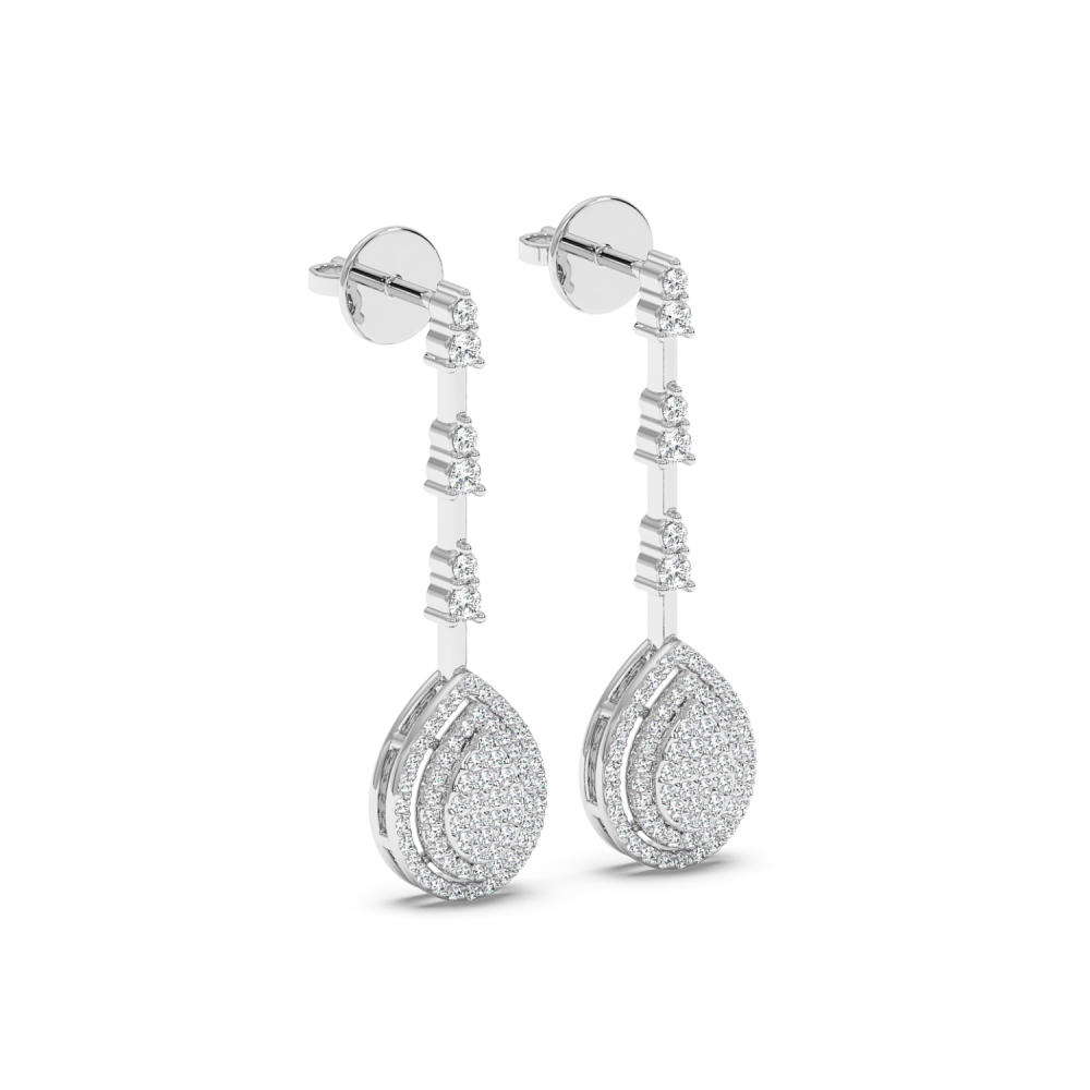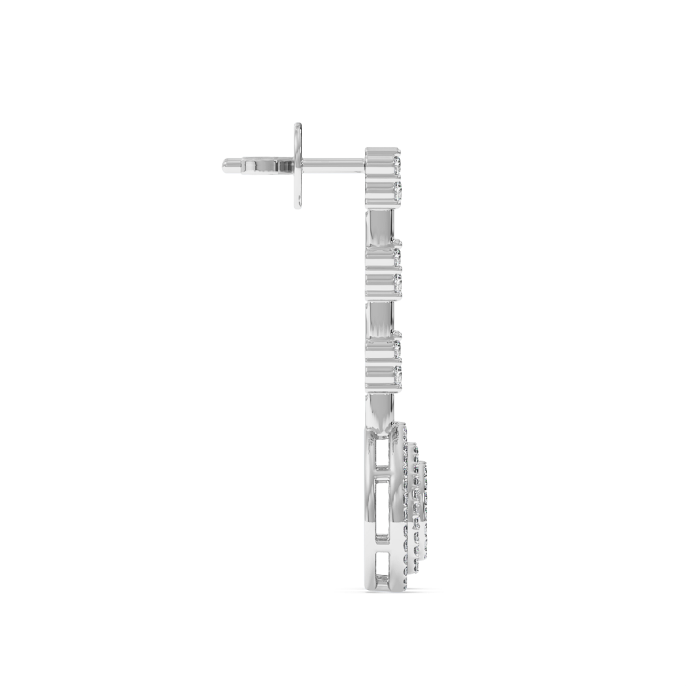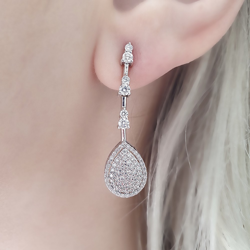 14 K white gold earrings with 0.58 ct white diamonds. The earrings weigh 3.35 grams.