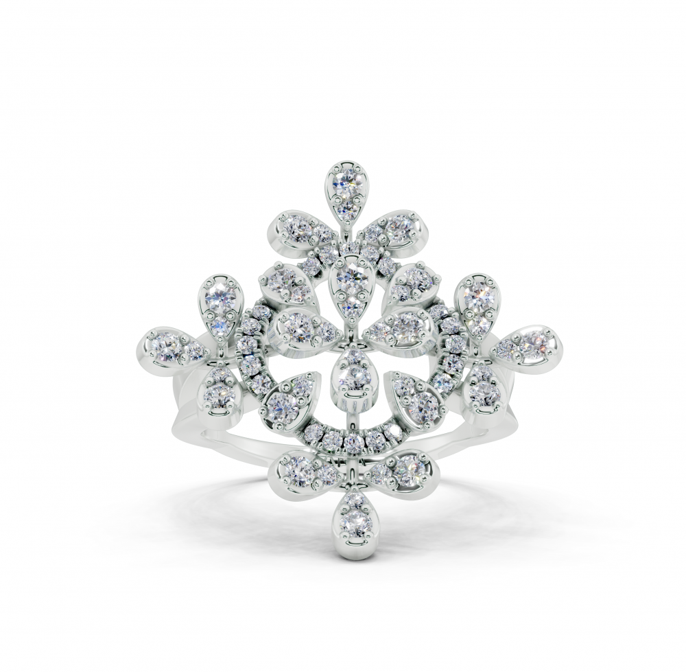 14K white gold ring with 0.58ct round diamonds. Ring weight is approximately 6.00 grams. The ring can also be made to order in 18K gold. We can modify the design according to your budget.