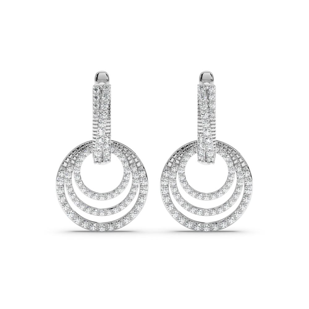 14 K white gold earrings with 0.59ct diamonds. The weight of the earrings is approximately 5 grams. The length of the earrings is approximately 2 cm.