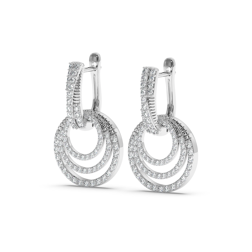 14 K white gold earrings with 0.59ct diamonds. The weight of the earrings is approximately 5 grams. The length of the earrings is approximately 2 cm. Earrings can also be made to order in 18K yellow or rose gold. We can modify the design according to your budget.