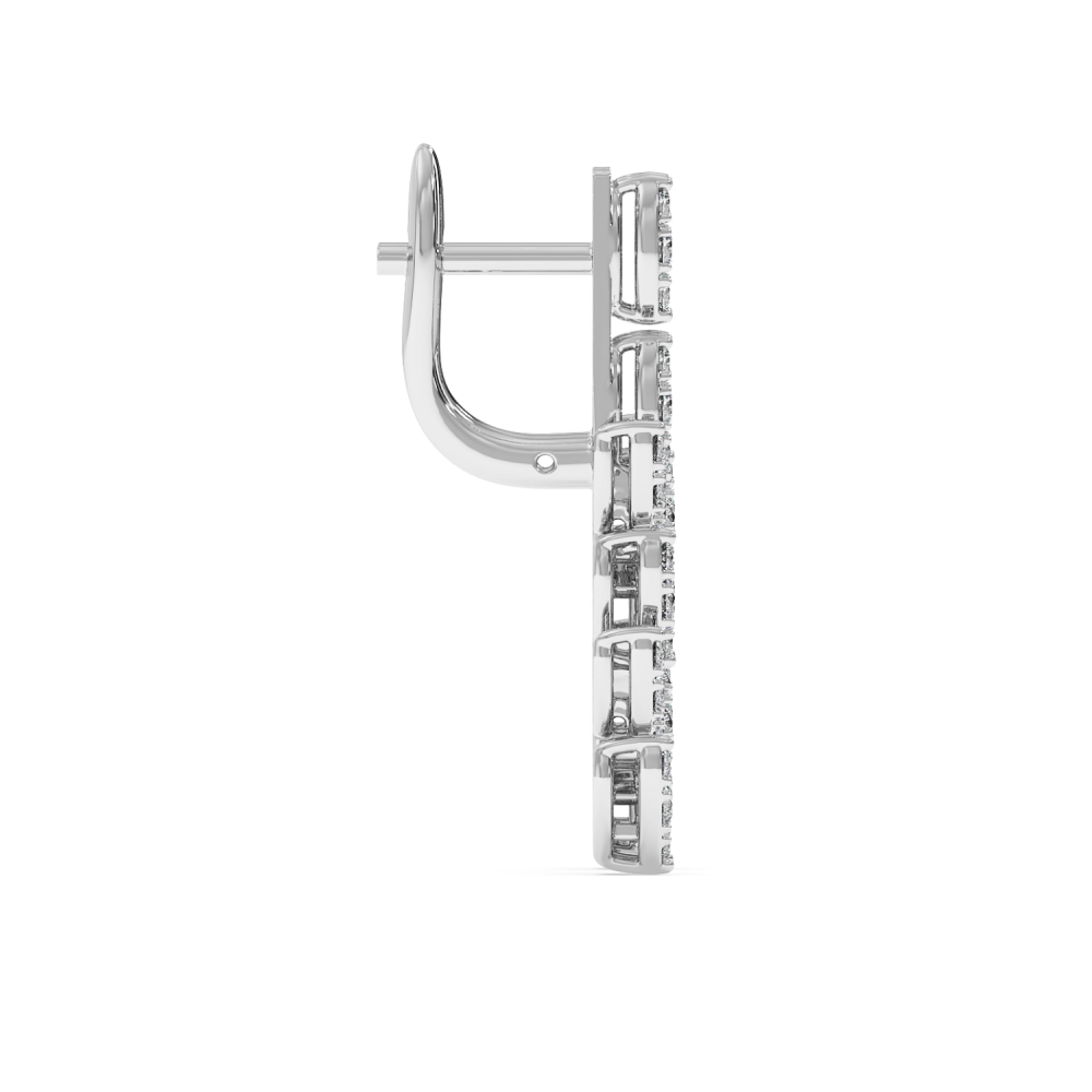 14 K white gold earrings with 0.60 ct diamonds. The weight of the earrings is 3.59 grams. The length of the earrings is 2.3 cm