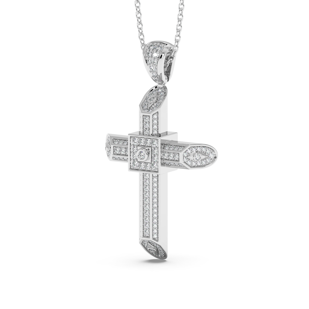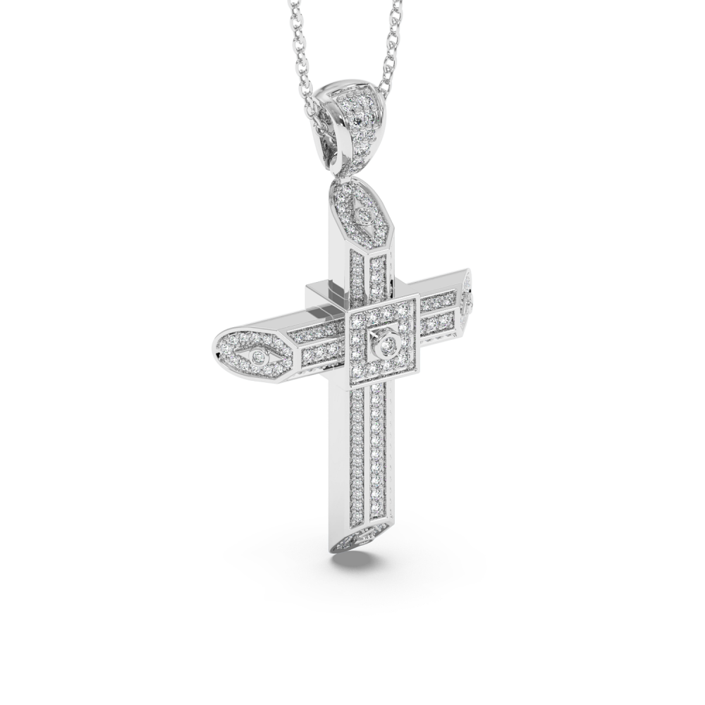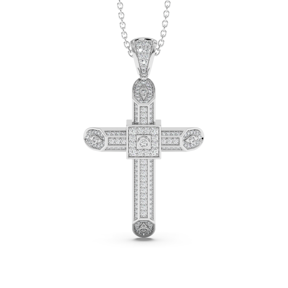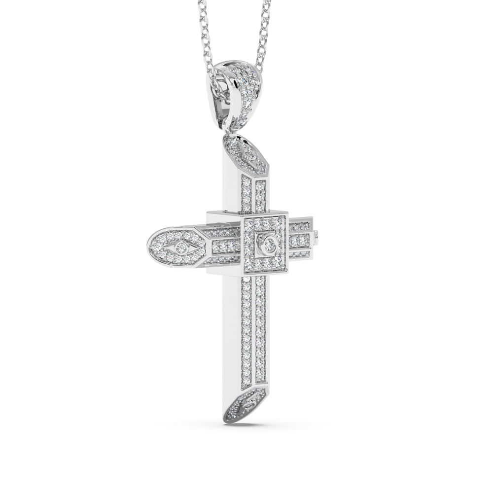 14K gold cross pendant with 0.60ct diamonds. Weight is approximately 6.20 grams. The pendant can also be made to order in 18K yellow or rose gold. We can modify the design according to your budget. We can choose the characteristics of the diamonds (cut, color, clarity, carat) to create the...