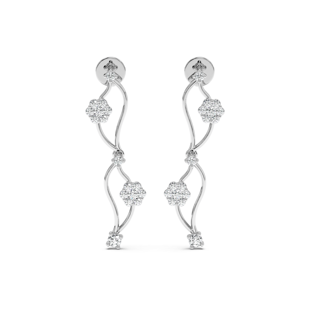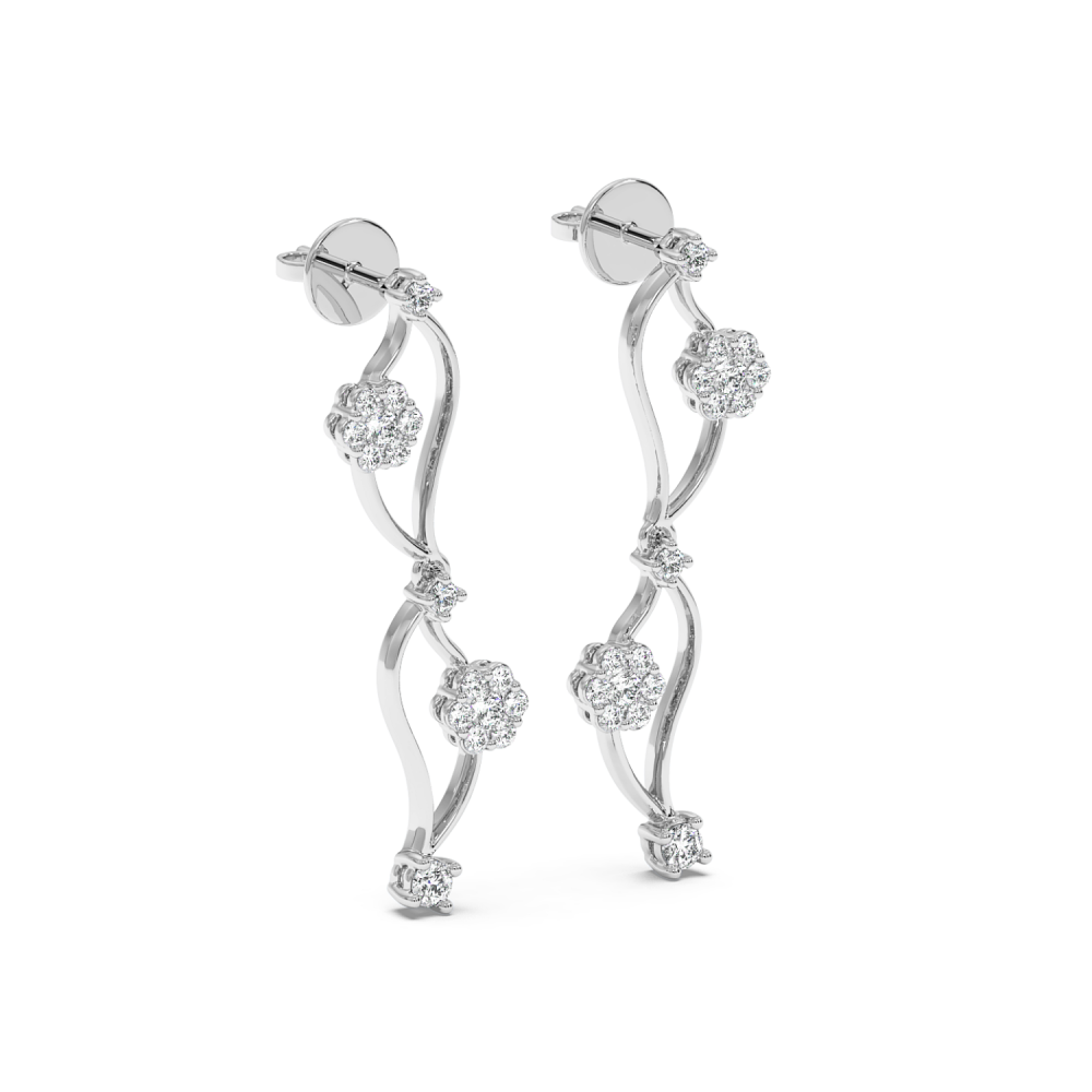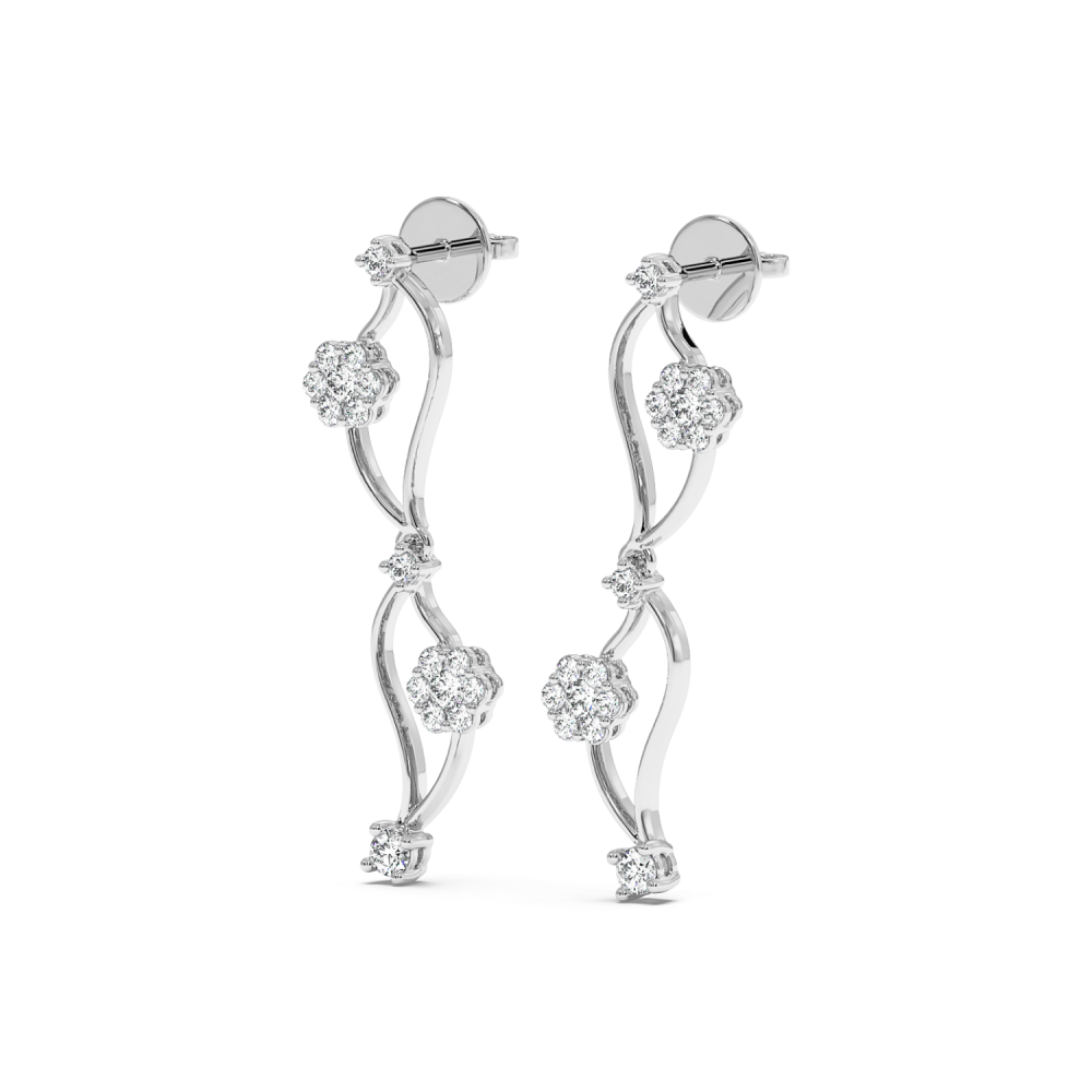 14 K white gold earrings with 0.62 ct diamonds. The weight of the earrings is 2.69 grams.
