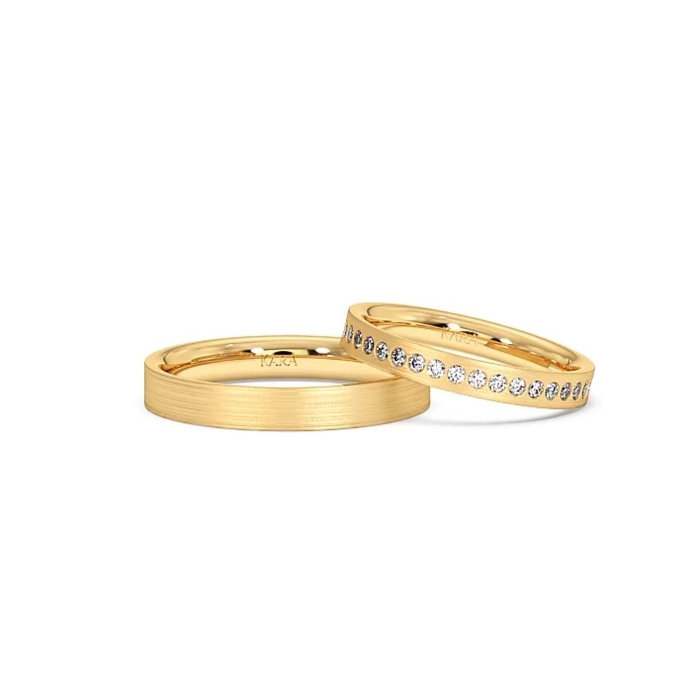 14K gold wedding rings with 0.62ct white diamonds. Approximate weight is 7.50gr/set. Ladies wedding ring width 3mm, men wedding ring width 3.50mm.