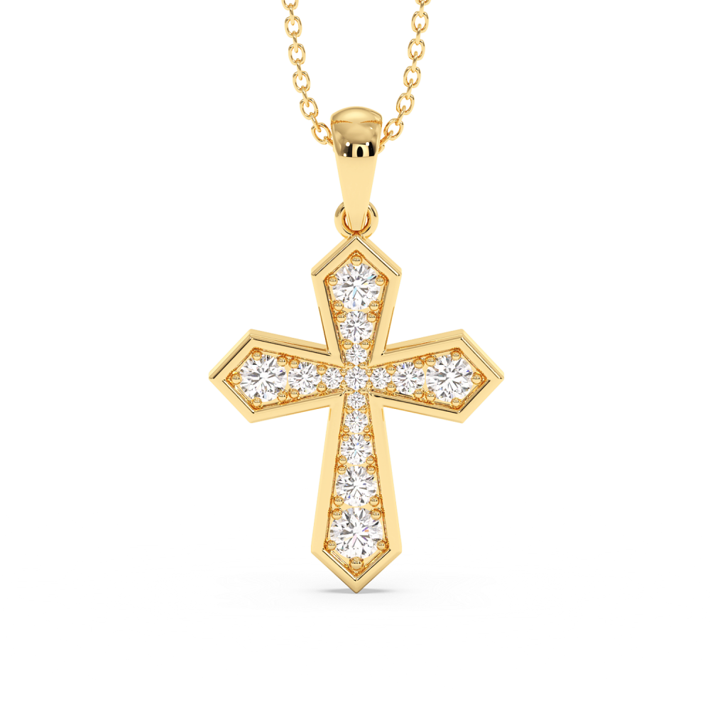 Cross pendant in 14 K gold with 0.28ct diamonds. The weight of the cross is approximately 2.10 grams.