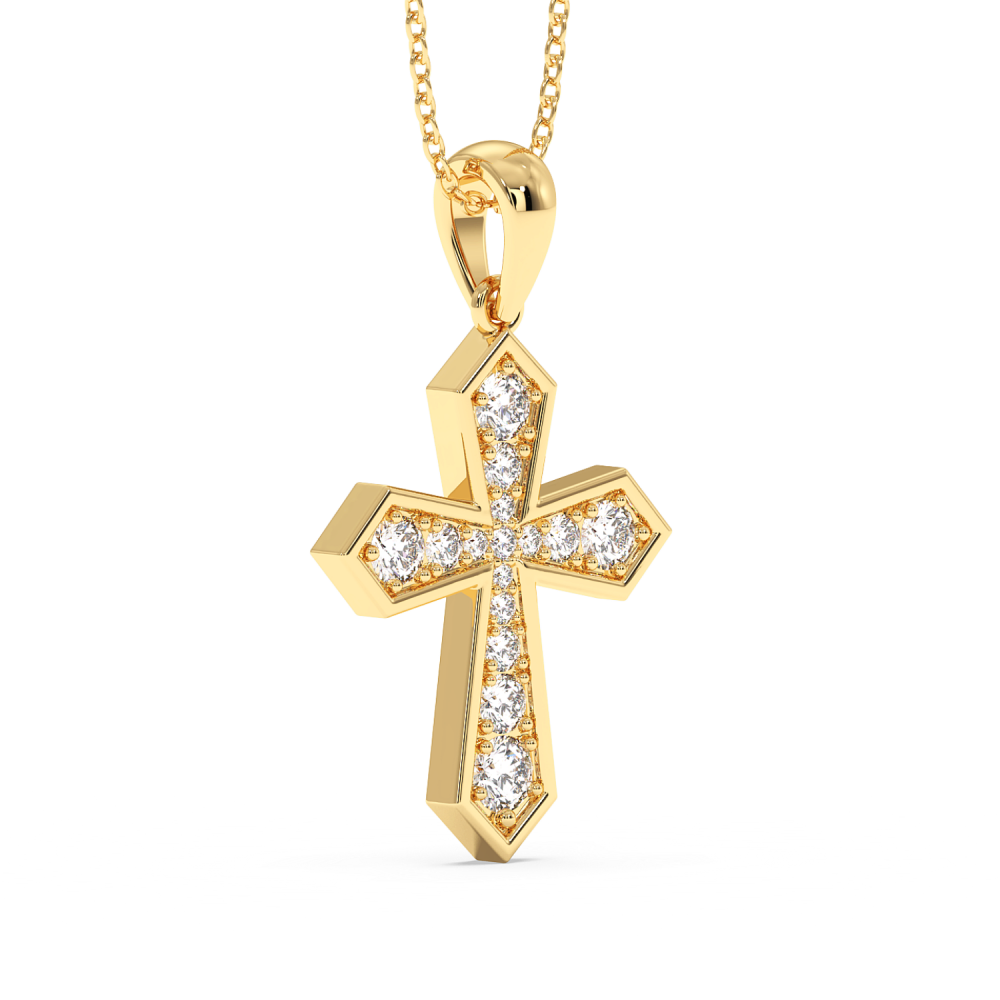 Cross pendant in 14 K gold with 0.28ct diamonds. The weight of the cross is approximately 2.10 grams. Go to "SPECIFICATIONS" for more details about this product.