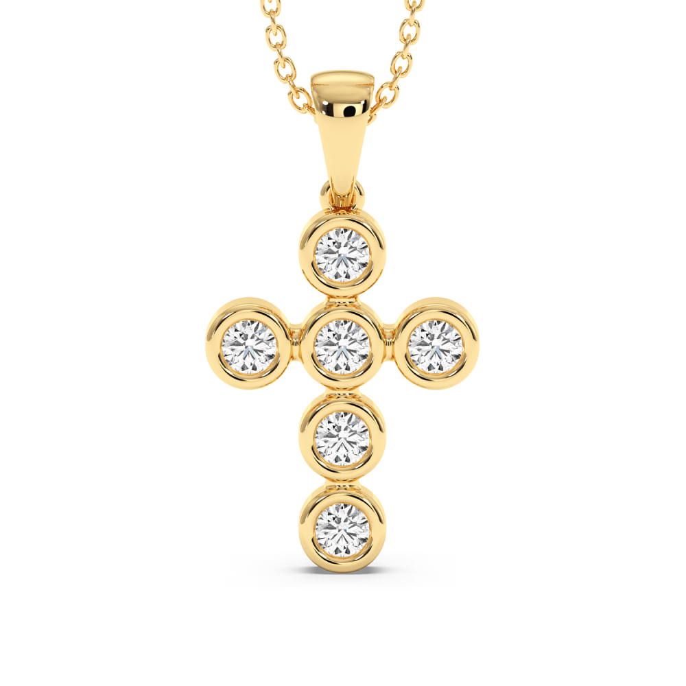 Cross pendant in 14 K gold with 0.64ct diamonds. The weight of the cross is approximately 2.50 grams. Go to "SPECIFICATIONS" for more details about this product.