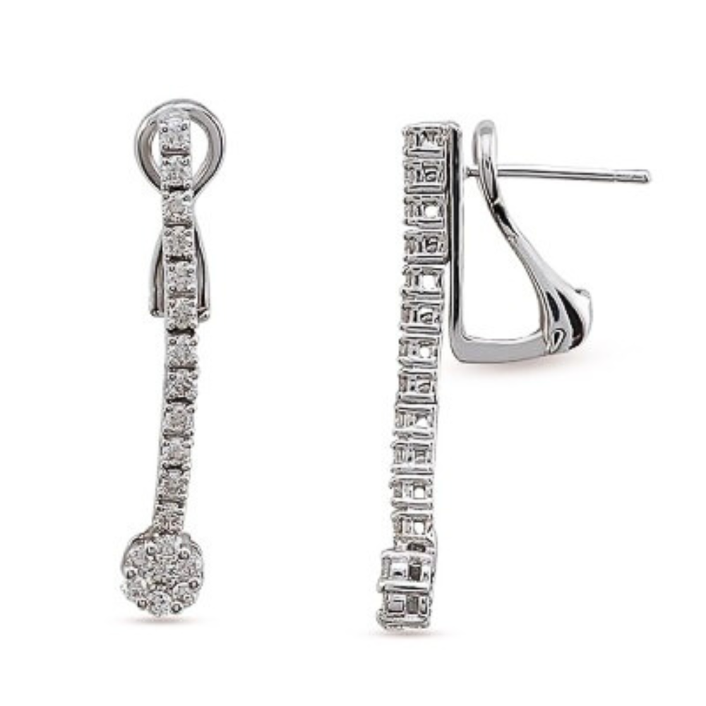 14 K white gold earrings with 0.65 ct diamonds. The earrings weigh 2.75 grams.