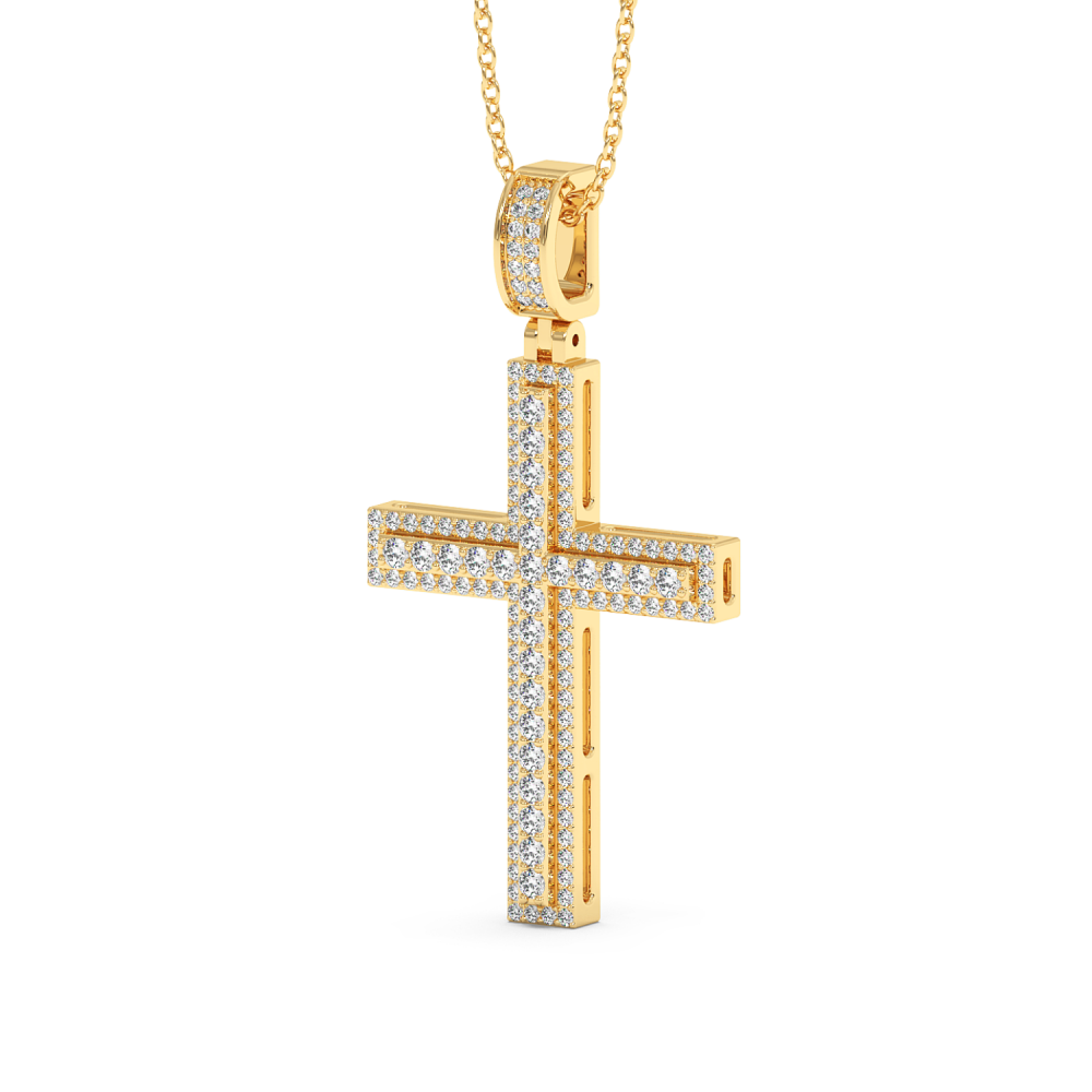 Cross pendant in 14 K gold with 0.65ct diamonds. The weight of the cross is approximately 3.70 grams. Go to "SPECIFICATIONS" for more details about this product.