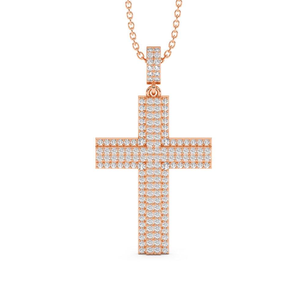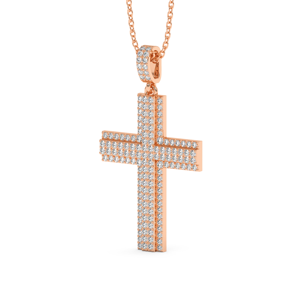 14K gold cross pendant with 0.68ct diamonds. Weight is approximately 3.40 grams. The pendant can also be made to order in 18K yellow or rose gold. We can modify the design according to your budget. We can choose the characteristics of the diamonds (cut, color, clarity, carat) to create the...