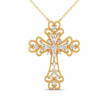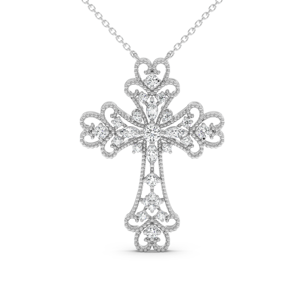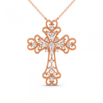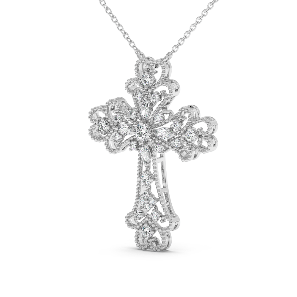 14 K white gold cross pendant with 0.69ct diamonds. The weight of the cross is approximately 5.50 grams. Go to "SPECIFICATIONS" for more details about this product.