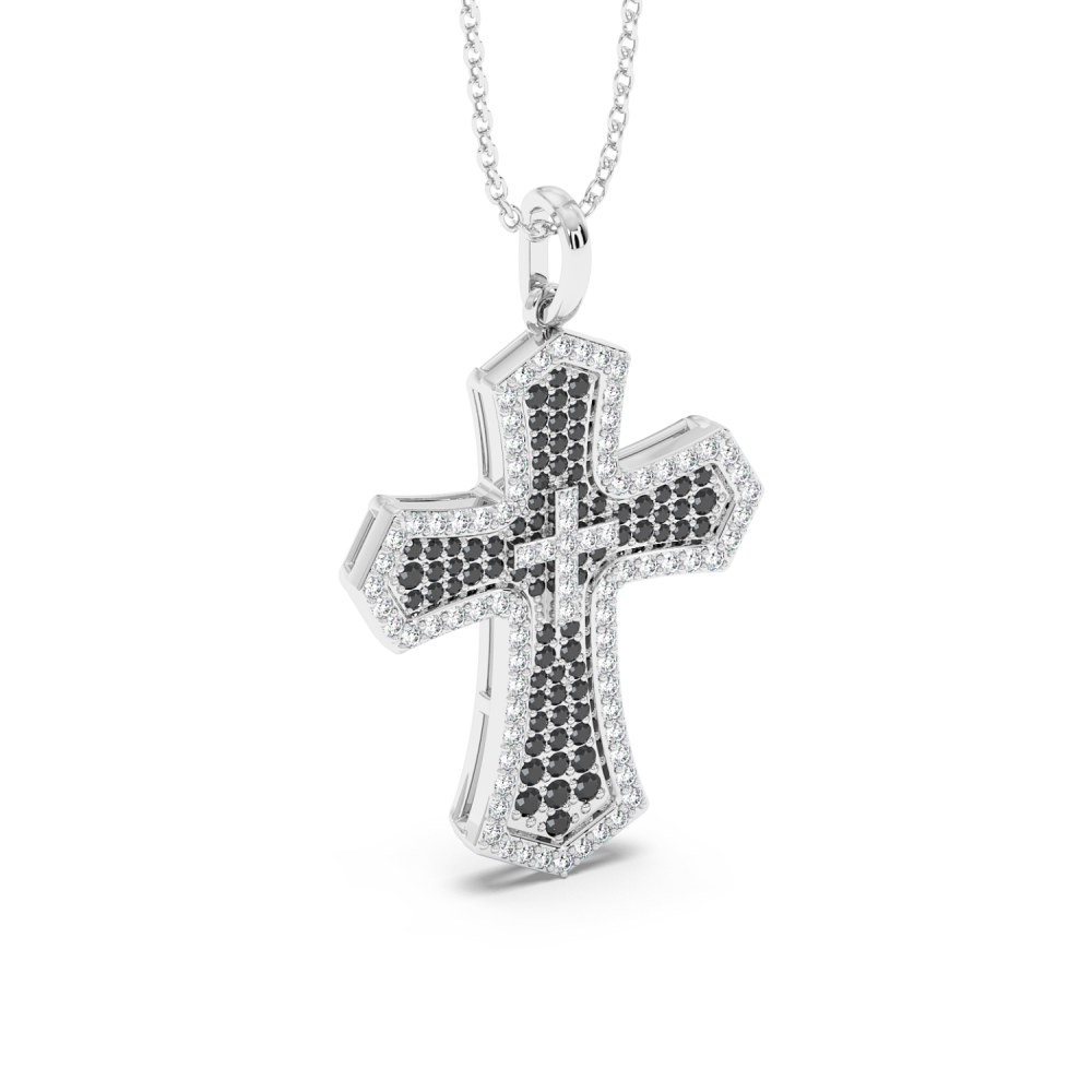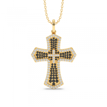 Cross pendant in 14 K gold, with 0.72ct black diamonds. The weight of the cross is approximately 5.60 grams. Go to "SPECIFICATIONS" for more details about this product.