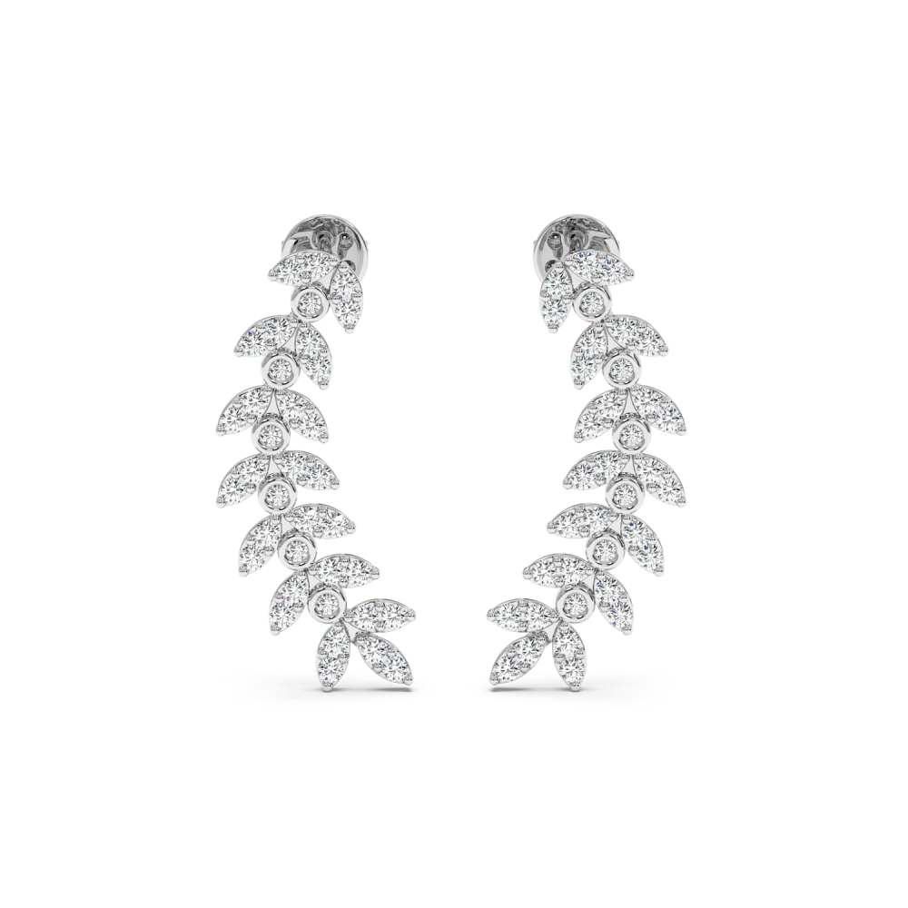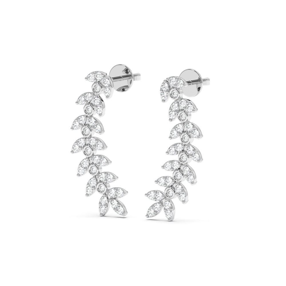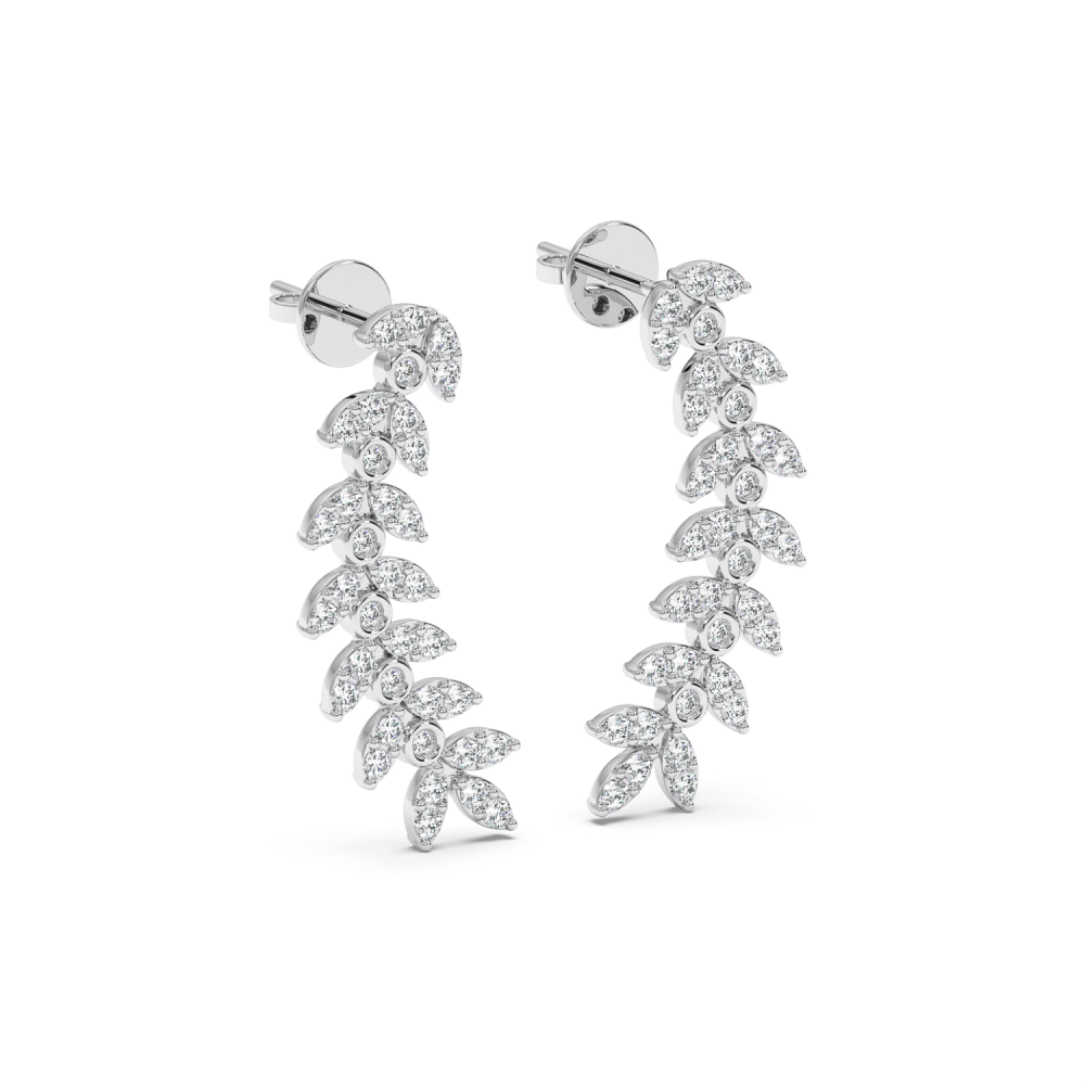 14 K white gold earrings with 0.74 ct diamonds. The weight of the earrings is 3.2 grams. The length of the earrings is 2.3 cm