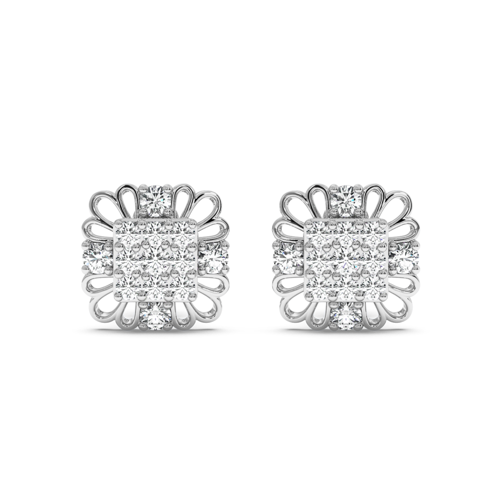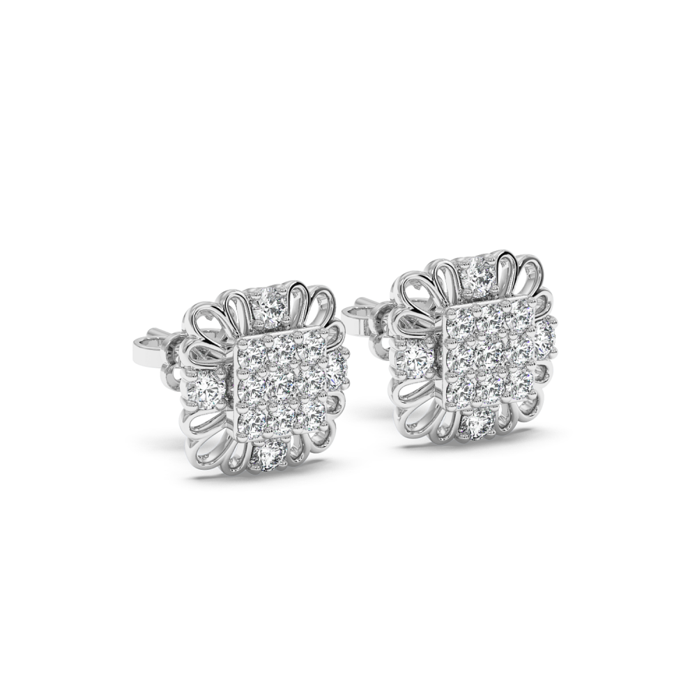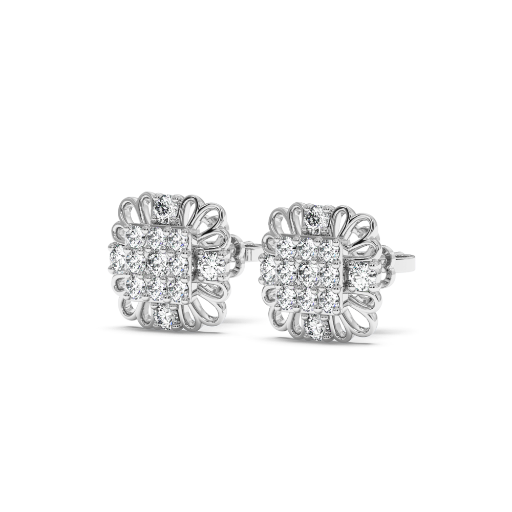 14 K white gold earrings with 0.74 ct diamonds. The earrings weigh 3.20 grams.   Go to "SPECIFICATIONS" for more details about this product. Weights and squares are approximate   Please refer to the chart below for an accurate diamond valuation: