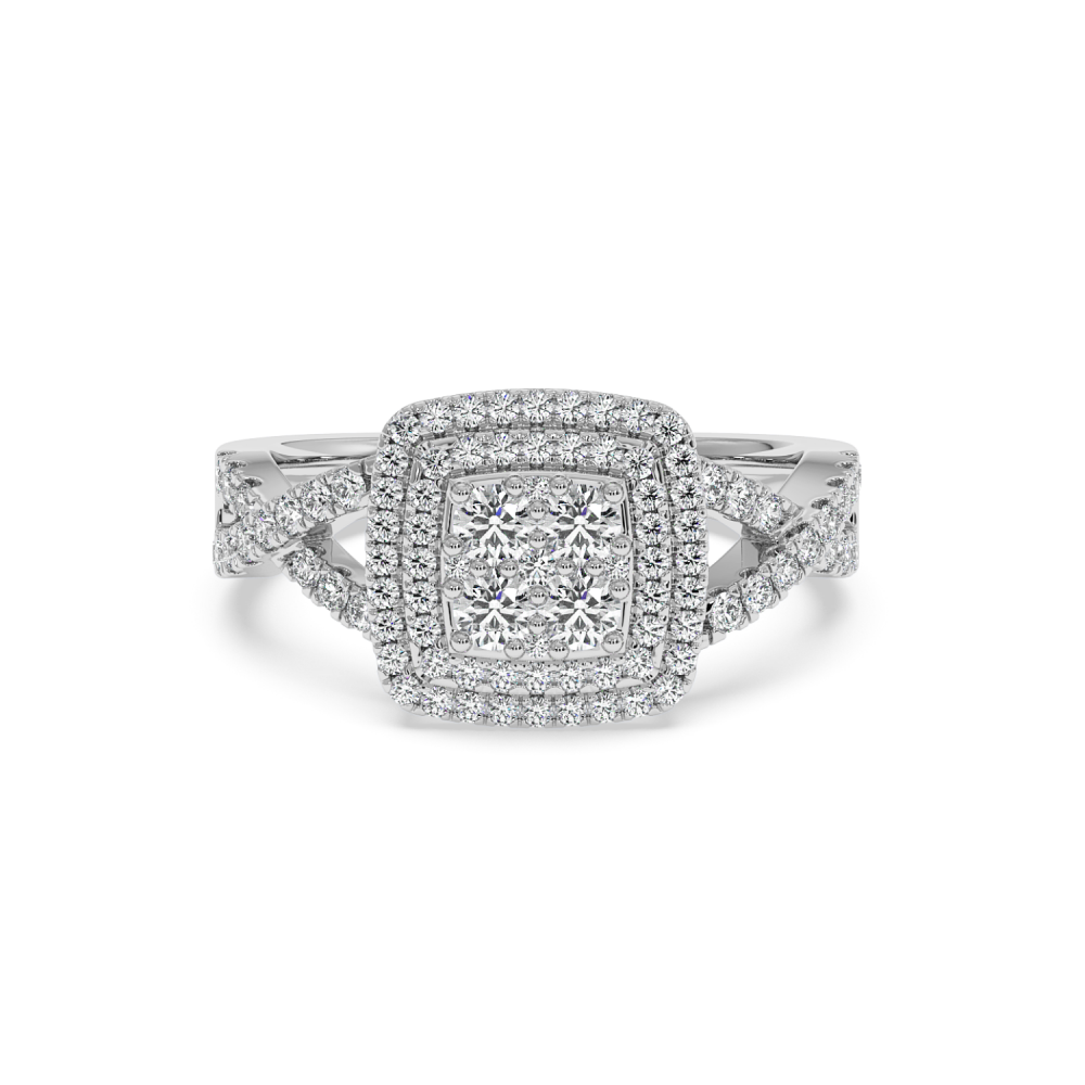 14 K white gold ring with 0.74ct diamonds. The weight of the ring is about 4 grams. The ring can also be made to order in 18K gold. We can modify the design according to your budget. We can choose the diamond characteristics (cut, color, clarity, carat) to create the perfect diamond...