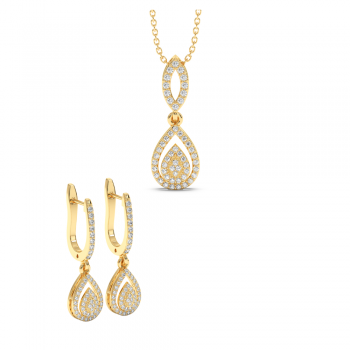 The set includes: 14K gold pendant chain with 0.29 ct diamonds and 14K gold earrings with 0.46 ct diamonds. The total weight of the set is approximately 6.00 grams. Go to "SPECIFICATIONS" for more details about this product.