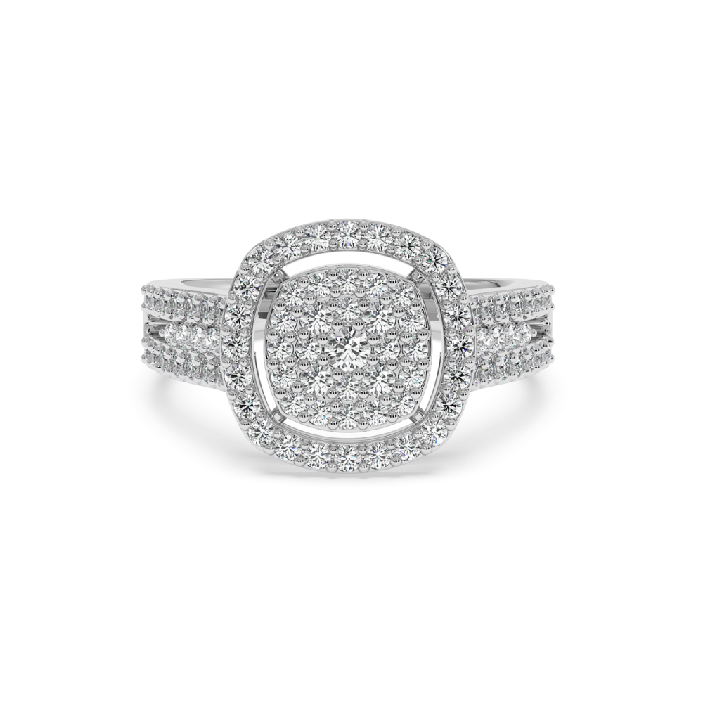 14 K white gold ring with 0.82ct diamonds. Ring weight is approximately 5 grams. The ring can also be made to order in 18K gold. We can modify the design according to your budget. We can choose the diamond characteristics (cut, color, clarity, carat) to create the perfect diamond engagement...