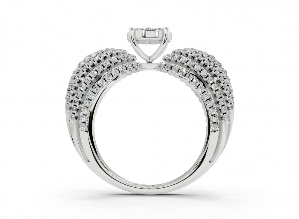 14K white gold ring with 0.87ct round diamonds. Ring weight is approximately 4.50 grams. The ring can also be made to order in 18K gold. We can modify the design according to your budget.