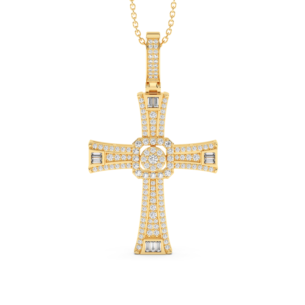 Cross pendant in 14 K gold with 0.89ct diamonds. The weight of the cross is approximately 6.50 grams. Go to "SPECIFICATIONS" for more details about this product.