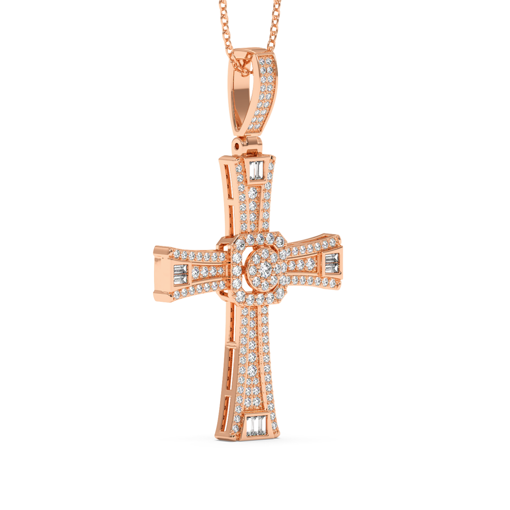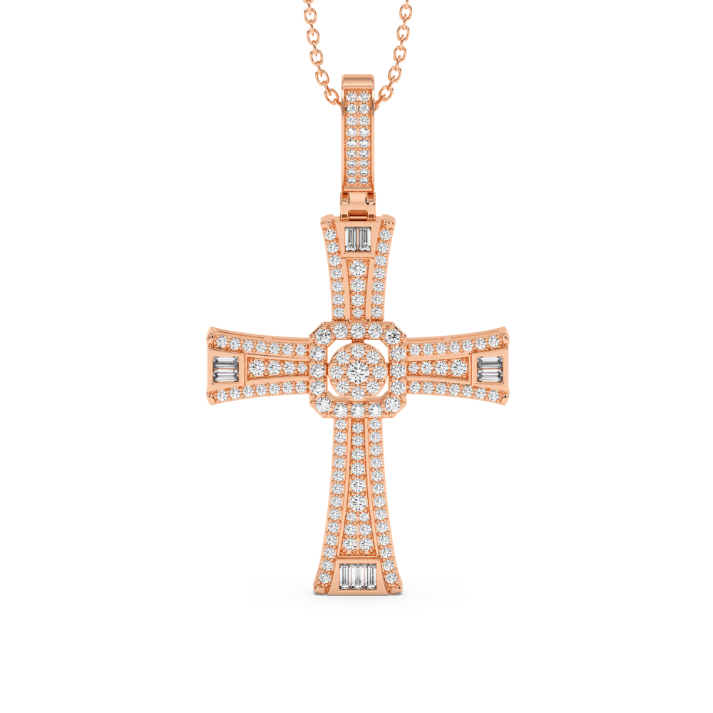 Cross pendant in 14 K gold with 0.89ct diamonds. The weight of the cross is approximately 6.50 grams. Go to "SPECIFICATIONS" for more details about this product.