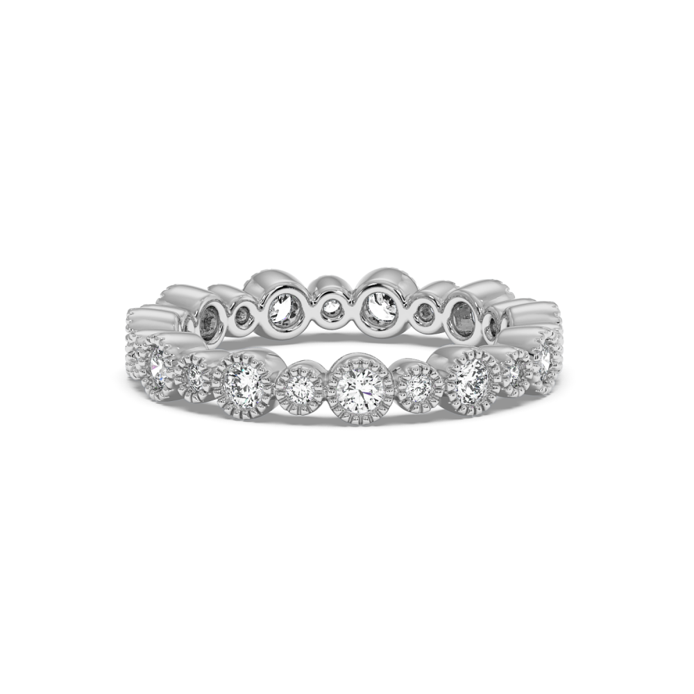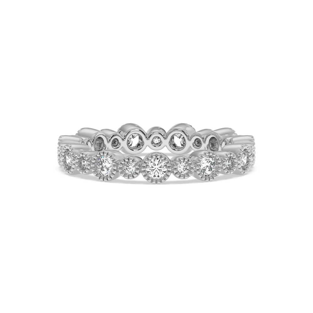 Eternity ring/ring in 14 K white gold with 0.8 ct diamonds. Weight is 2.97 grams. It can also be made to order in 18K gold. We can modify the design according to your budget. We can choose the diamond characteristics (cut, color, clarity).