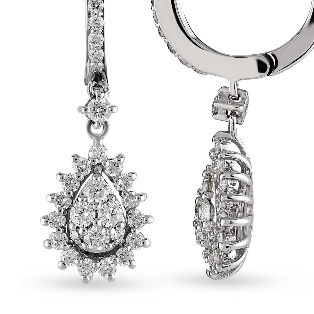 14 K white gold earrings with 0.95 ct diamonds. The earrings weigh 3.90 grams.