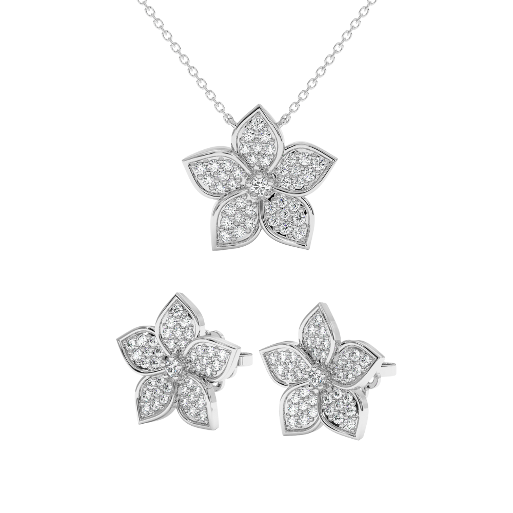 The set includes: 14K gold pendant chain with 0.50ct diamonds and 14K gold earrings with 0.52ct diamonds. The total weight of the set is approximately 7.70 grams.