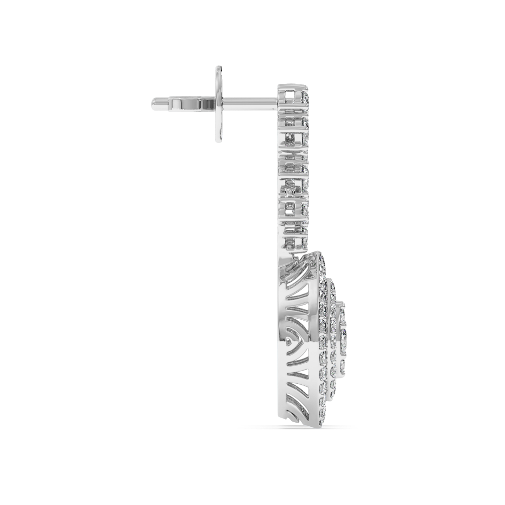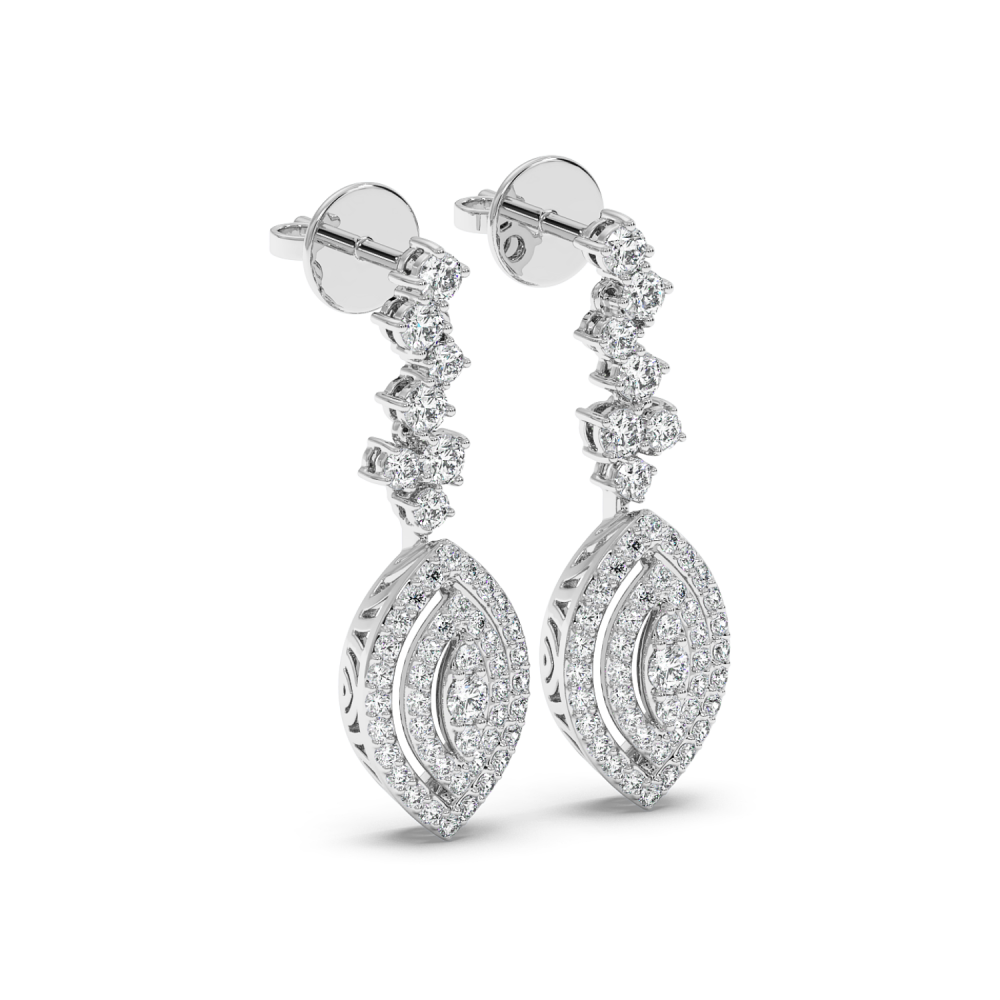 14k white gold earrings with 1.04 ct round diamonds.