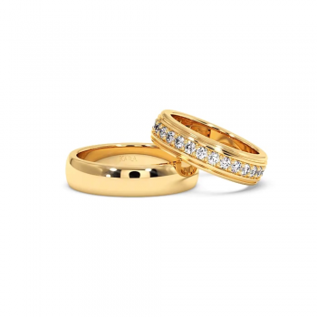 14K gold wedding rings with 1.07ct white diamonds. Approximate weight is 15.00gr/set. The width is 5.50mm. Wedding rings can be made to order in 18k gold. We can modify the design according to your budget. We can choose the diamond characteristics (cut, color, clarity, carat) for the wedding...