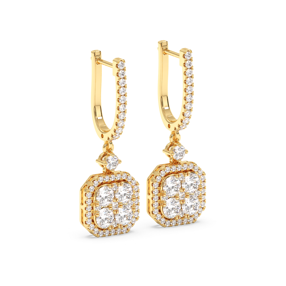 Earrings can also be made to order in 18K, yellow or rose gold. We can modify the design according to your budget. We can choose the characteristics of the diamonds (cut, color, clarity, carat) to create the perfect earrings for you.