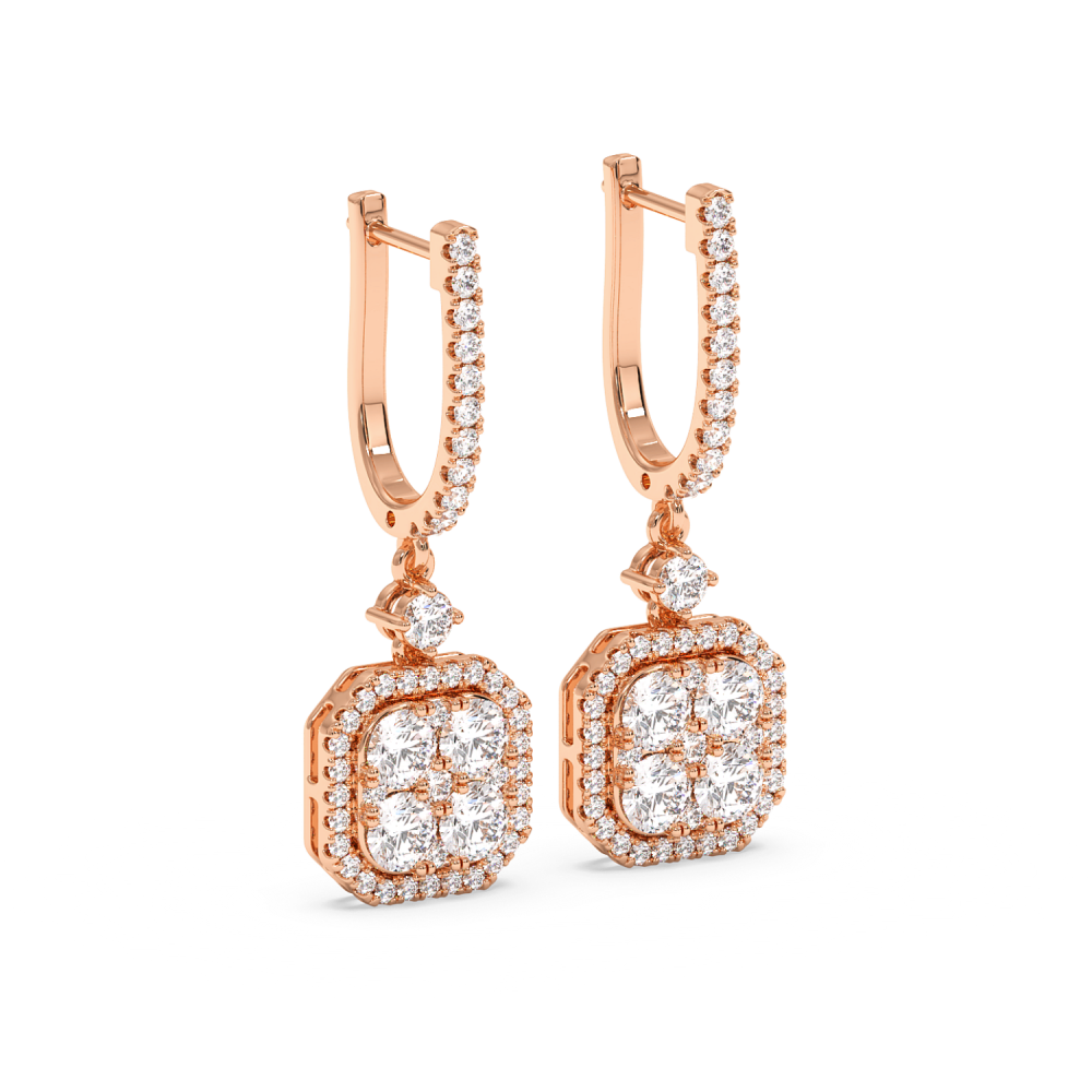 Earrings can also be made to order in 18K, yellow or rose gold. We can modify the design according to your budget. We can choose the characteristics of the diamonds (cut, color, clarity, carat) to create the perfect earrings for you.