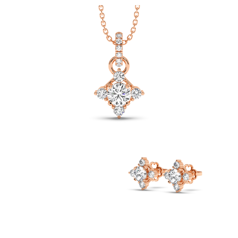 The set includes: 14K white gold pendant chain and earrings with 1.20 ct diamonds. Total weight of the set is 4.87 grams.