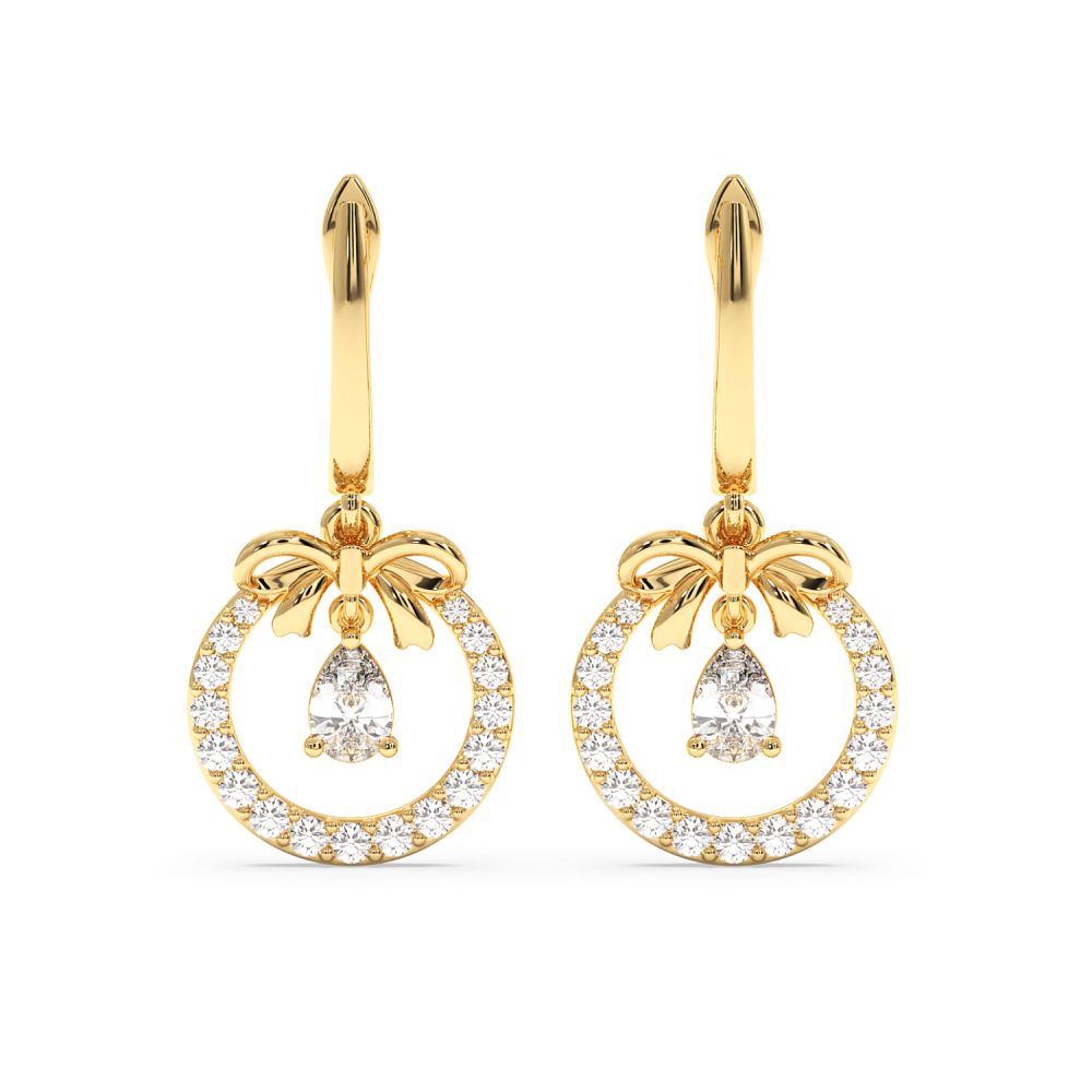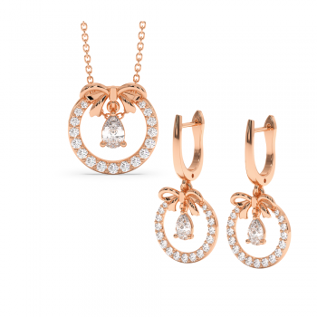 The set includes: 14K gold pendant chain with a 0.25ct Pear Cut diamond and 0.25ct round diamonds and 14K gold earrings with 0.36ct Pear Cut diamonds and 0.34ct round diamonds. The total weight of the set is approximately 6 grams. Go to "SPECIFICATIONS" for more details about this product.