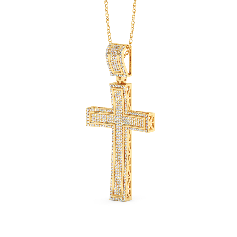 14 K gold cross pendant with 1.21 ct diamonds. The weight of the cross is approximately 11.00 grams. Go to "SPECIFICATIONS" for more details about this product.