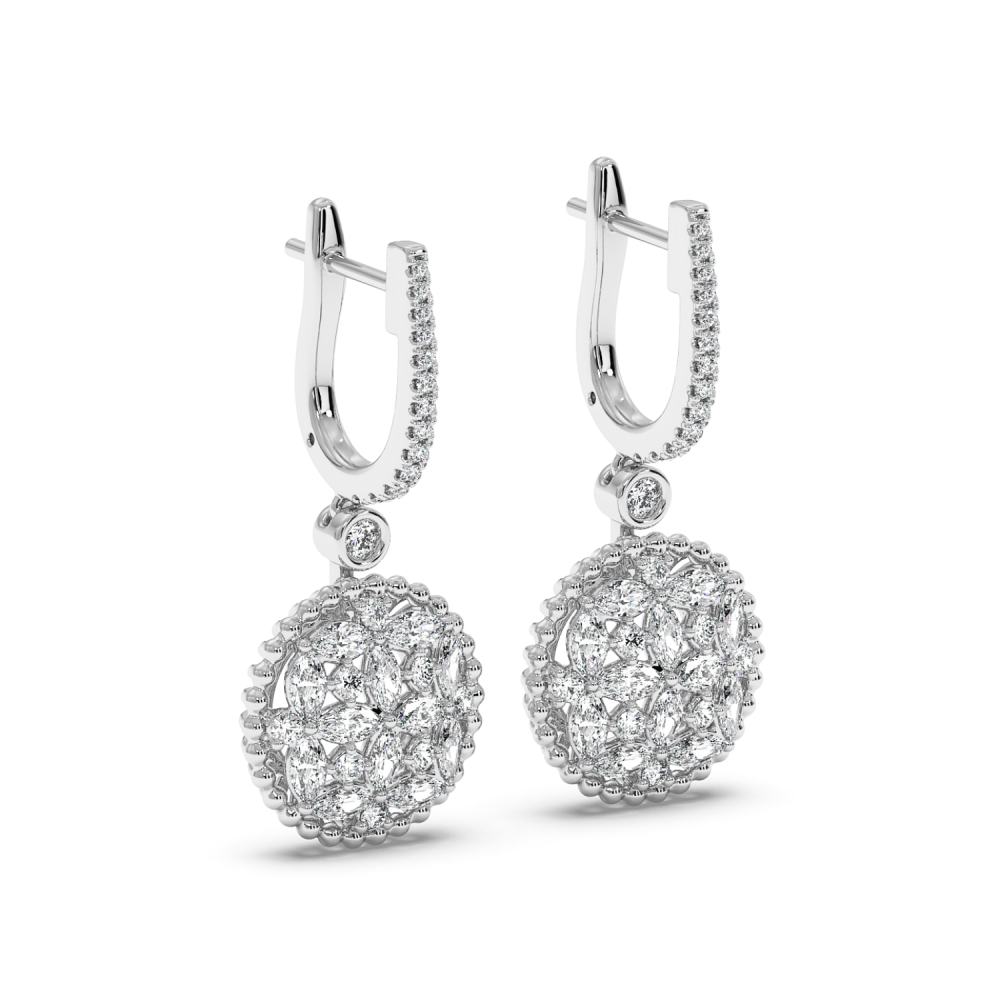 14 K white gold earrings with 1.33 ct diamonds. The weight of the earrings is 5.75 grams.