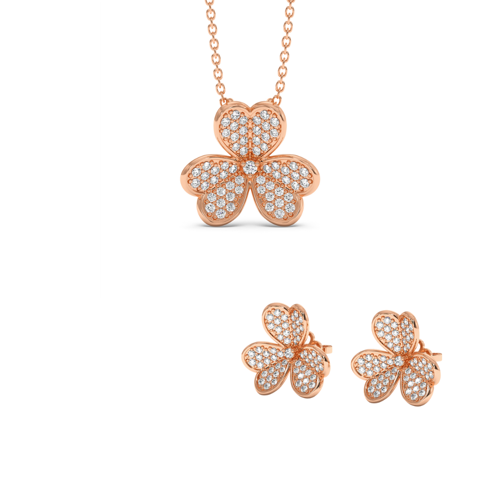 The set includes: 14K gold pendant chain with 0.53ct diamonds and 14K gold earrings with 0.85ct diamonds. The total weight of the set is approximately 7.80 grams. Go to "SPECIFICATIONS" for more details about this product.
