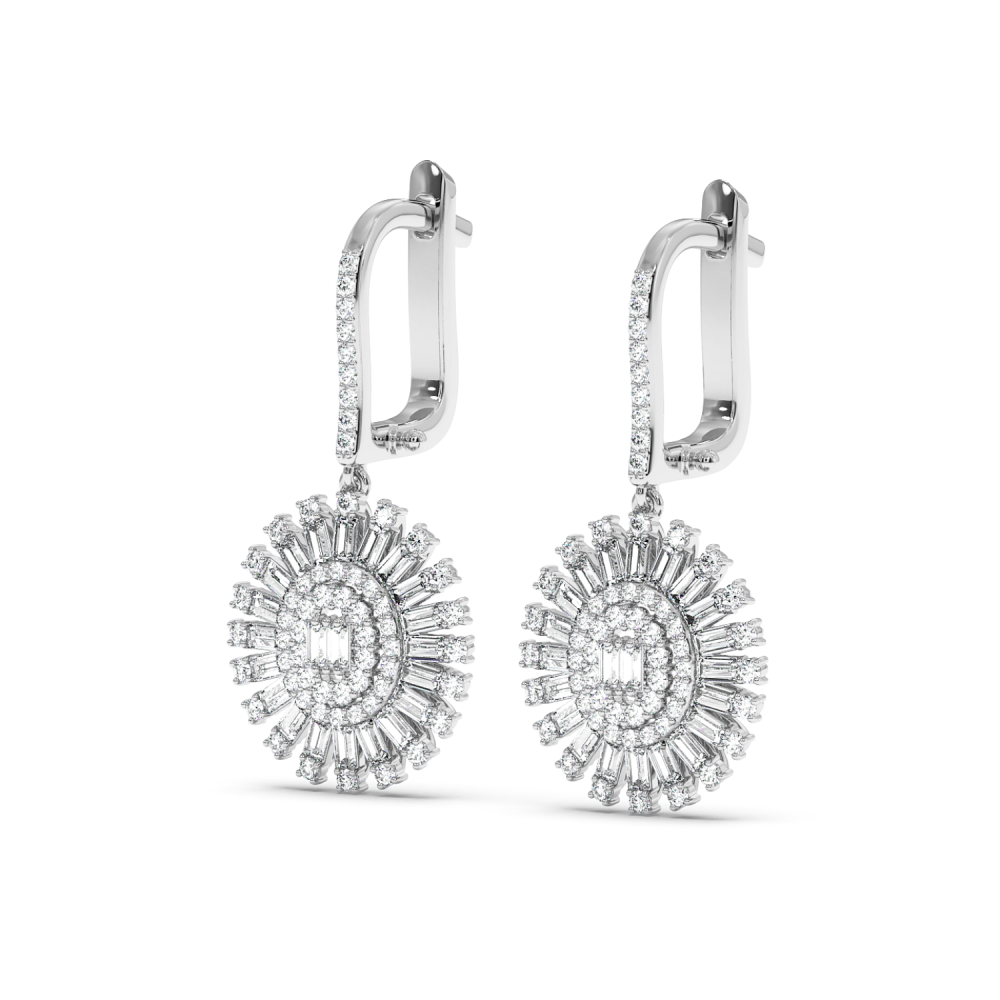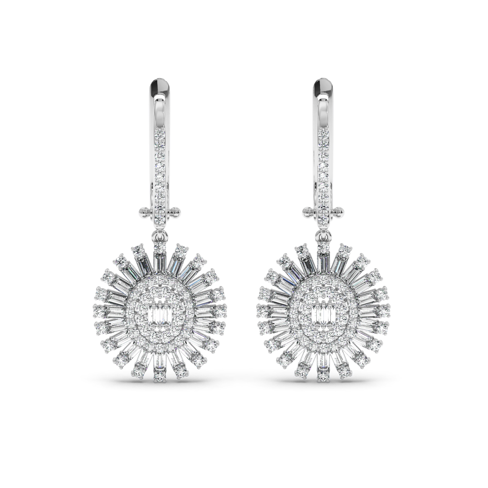 14 K gold earrings with 1.3ct baget diamonds and 0.99ct round diamonds. The earrings weigh approximately 9.20 grams. Go to "SPECIFICATIONS" for more details about this product.