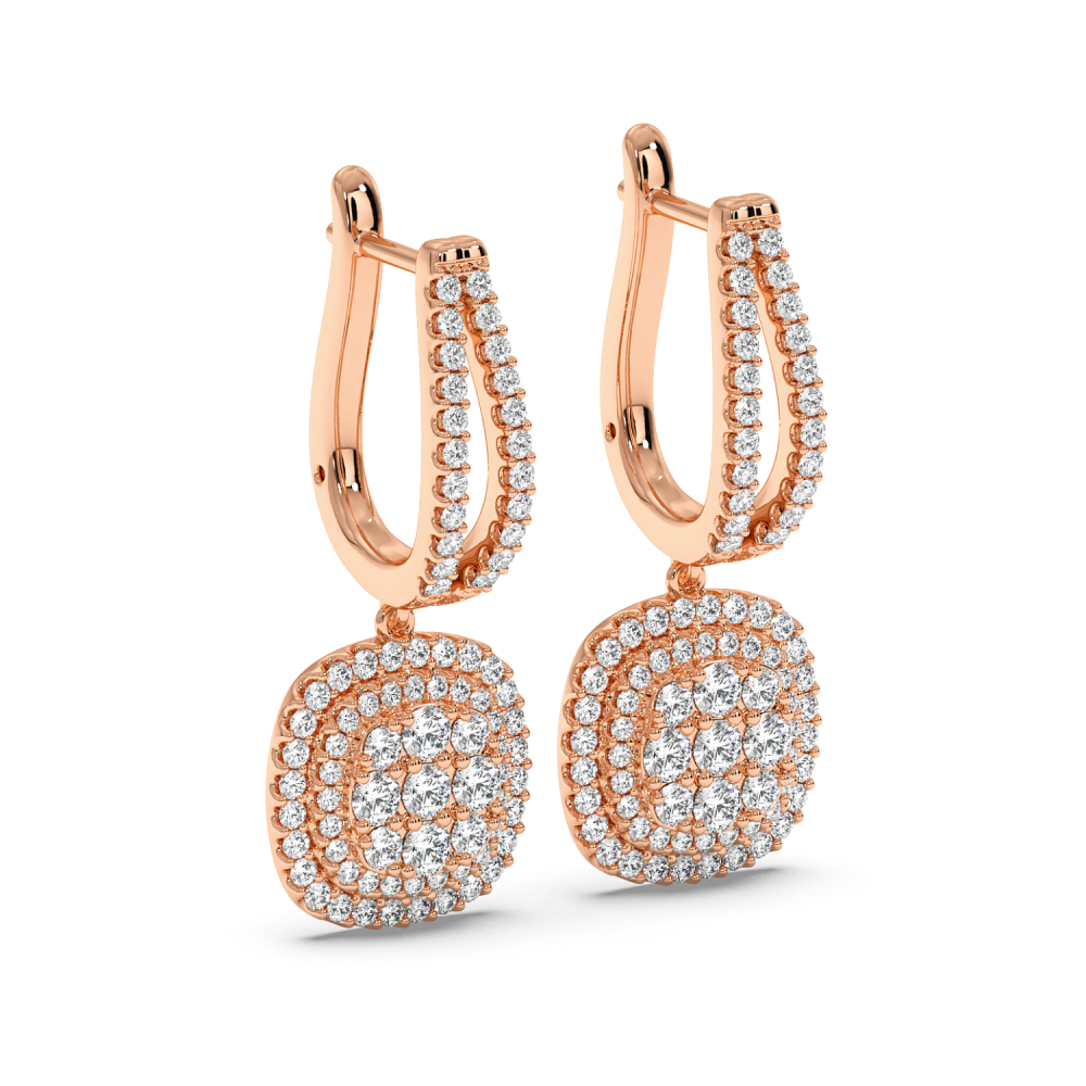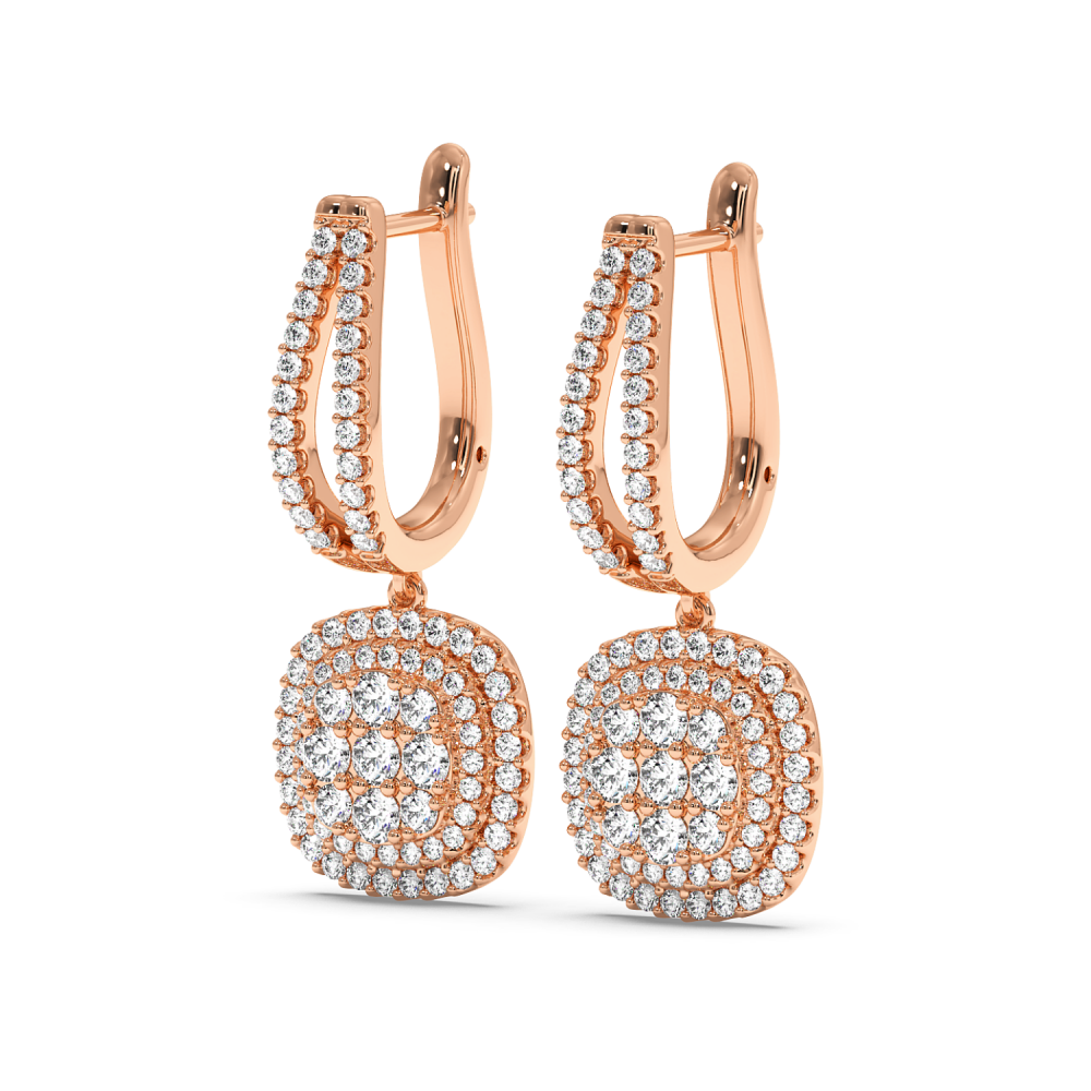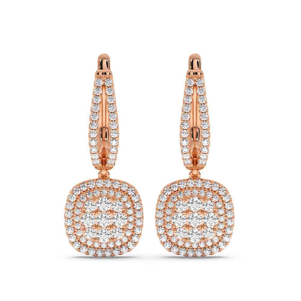Earrings can also be made to order in 18K, yellow or rose gold. We can modify the design according to your budget. We can choose the characteristics of the diamonds (cut, color, clarity, carat) to create the perfect earrings for you.