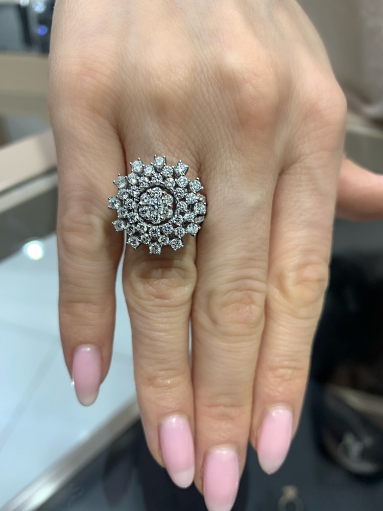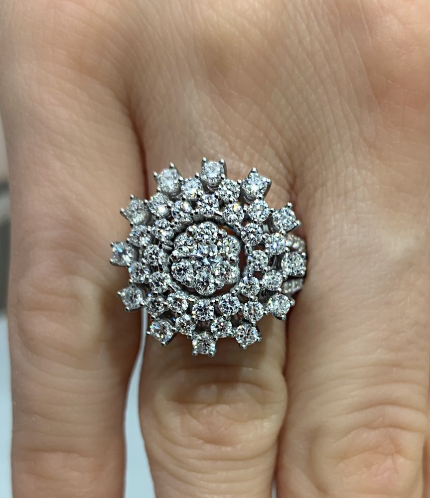 14 K white gold diamond ring with 1.49 ct diamonds. The weight of the ring is 8.95 grams. The ring can also be made to order in 18K gold. We can modify the design according to your budget. We can choose the characteristics of the diamonds (cut, color, clarity, carat) to create the perfect...