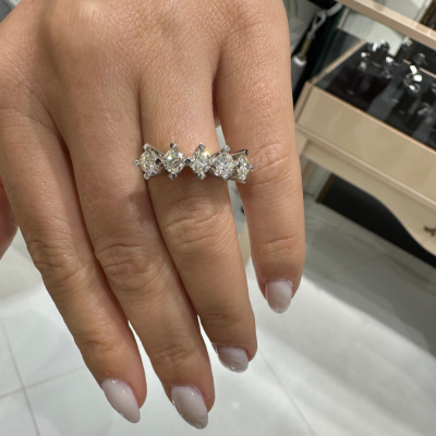 14 K white gold ring with 1.50 ct Fancy diamonds. Ring weight is 4.10 grams. The ring can also be made to order in 18K gold. We can modify the design according to your budget. We can choose the characteristics of the diamonds (cut, color, clarity, carat) to create the perfect diamond...