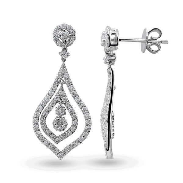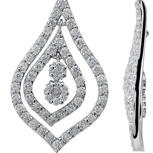 14K white gold earrings with 1.53 carat diamonds, weighing 4.96 grams.