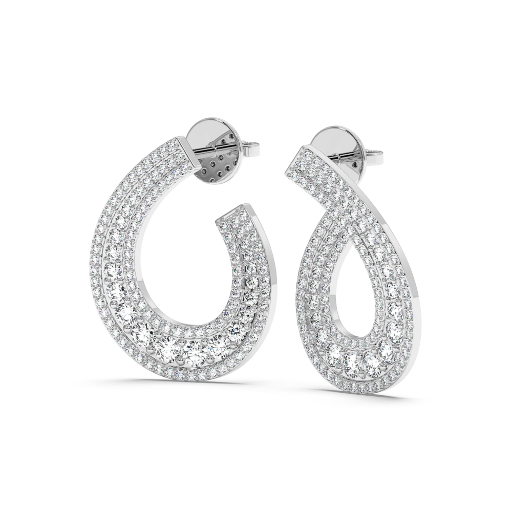 14 K white gold earrings with 1.72 ct diamonds. The weight of the earrings is 7.11 grams.