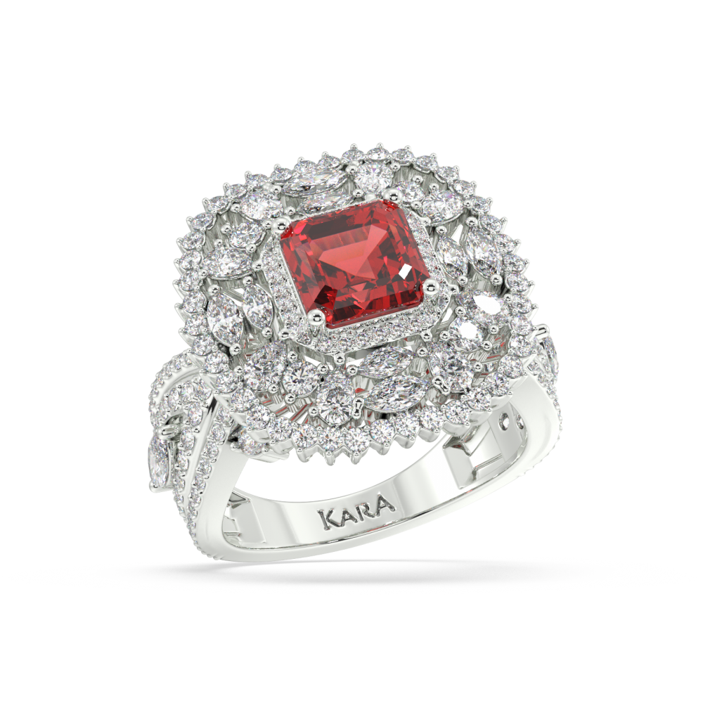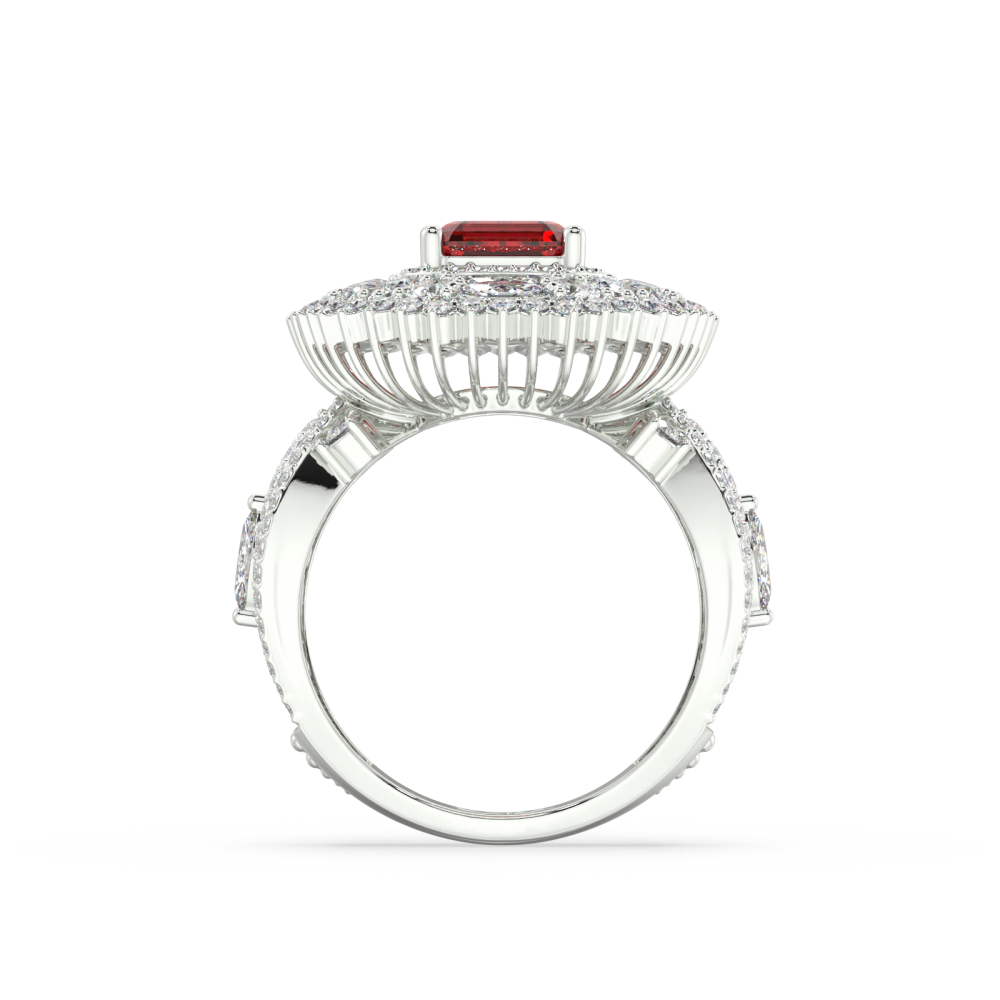 14K white gold ring with 1.72 ct Mix diamonds and 1.73 ct Ruby. Ring weight is approximately 7.50 grams.