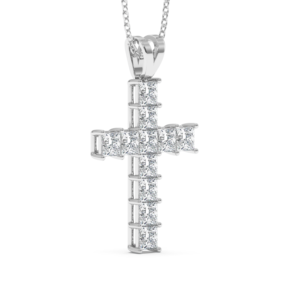14K gold cross pendant with 1.87ct diamonds. Weight is approximately 2 grams. The pendant can also be made to order in 18K yellow or rose gold. We can modify the design according to your budget. We can choose the characteristics of the diamonds (cut, color, clarity, carat) to create the...