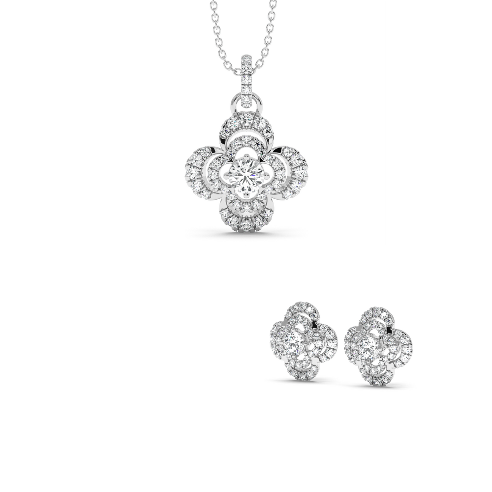 The set includes: 14K white gold pendant chain and earrings with 1.93 ct diamonds. The total weight of the set is 7.26 grams.