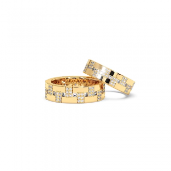 14K gold wedding rings with 1.96ct white diamonds. Approximate weight is 14.00gr/set. The width is 7mm. Wedding rings can be made to order in 18k gold. We can modify the design according to your budget. We can choose the diamond characteristics (cut, color, clarity, carat) for the wedding...